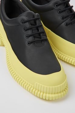 σχέδιο Pix μαύρα και κίτρινα δερμάτινα παπούτσια με κορδόνια για γυναικεία τροχόσπιτα