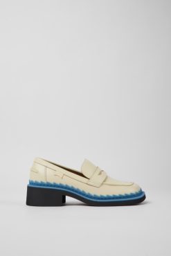 σχέδιο Taylor λευκό και μπλε δερμάτινο Loafers για γυναικεία τροχόσπιτα