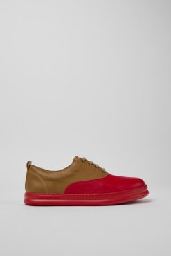 Runner καφέ και κόκκινο δερμάτινα αθλητικά παπούτσια για άνδρες Camper νέες αφίξεις