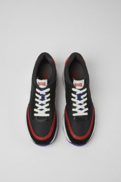 Μαύρα και κόκκινα ανδρικά πάνινα παπούτσια από ύφασμα και δέρμα με πατώματα και εξωτερικές σόλες από PU από 70% EVA και 30% καουτσούκ. Τα αθλητικά μας Drift διαθέτουν ελαφριά κατασκευή και σπορ σιλουέτα εμπνευσμένη από τα αθλητικά παπούτσια της δεκαετίας του ’90.