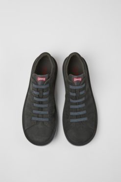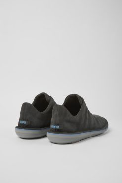 Γκρι ανδρικά παπούτσια Nubuck με ανακυκλωμένα ελαστικά κορδόνια PET και εξωτερικές σόλες XL EXTRALIGHT® EVA (51% ανακυκλωμένο). Ένα εικονίδιο Camper που εξελίσσεται με κάθε εποχή, τα παπούτσια Beetle είναι ελαφριά και εύκαμπτα, με σφραγισμένη κατασκευή που συνδυάζει ανατομικό σχήμα με πρωτότυπο σχέδιο .