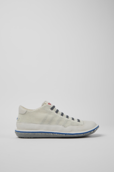 Λευκό μη βαμμένο δέρμα και ανδρικά πάνινα παπούτσια TENCEL™ Mesh με εξωτερικές σόλες XL EXTRALIGHT® 51% ανακυκλωμένες από EVA. Ένα εικονίδιο Camper που εξελίσσεται με κάθε εποχή, τα παπούτσια Beetle είναι ελαφριά και εύκαμπτα, με σφραγισμένη κατασκευή που συνδυάζει ανατομικό σχήμα με πρωτότυπο σχέδιο .
