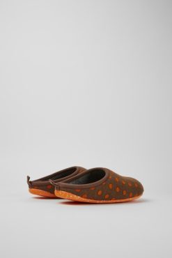 ανδρικές παντόφλες από μάλλινες παντόφλες σε σχέδιο Camper Wabi καφέ και πορτοκαλί