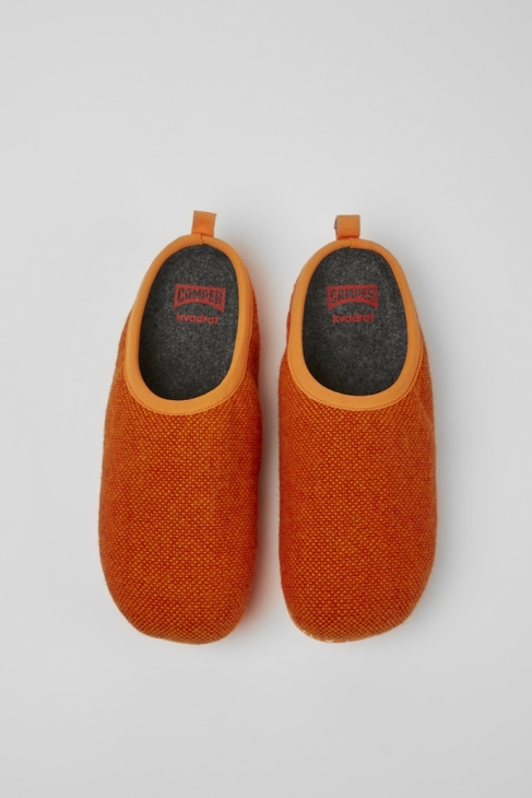 αποκλειστικές γυναικείες παντόφλες Camper Wabi πορτοκαλί μπλε και λευκές από ανακυκλωμένο μαλλί