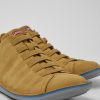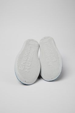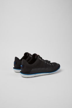 Μαύρο παπούτσι για άνδρες. Πάνω μέρος από 80% ανακυκλωμένο ύφασμα PET και ελαστικά κορδόνια. Λευκή και μπλε εξωτερική σόλα από 51% ανακυκλωμένο EVA. A Little Better, Never PerfectA Camper Icon που εξελίσσεται με κάθε εποχή, τα ανδρικά παπούτσια Beetle είναι ελαφριά και εύκαμπτα, με σφραγισμένη κατασκευή που συνδυάζει ανατομικό σχήμα με πρωτότυπο σχέδιο.