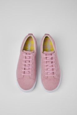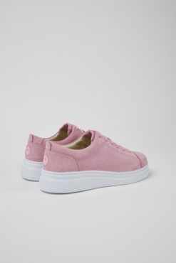 Ροζ γυναικεία αθλητικά παπούτσια Nubuck με εξωτερικές σόλες XL EXTRALIGHT®. Το Runner Up είναι η γυναικεία έκδοση του Runner, ενός εμβληματικού στυλ Camper που κυκλοφόρησε το 1982 και σηματοδότησε το πρώτο μας βήμα στον κόσμο του αθλητισμού. Αυτά τα γυναικεία αθλητικά παπούτσια προσφέρουν μια χαλαρή εμφάνιση και ένα διακριτικό τακούνι πλατφόρμας σε μια σπορ σιλουέτα εμπνευσμένη από τη δεκαετία του ’80.