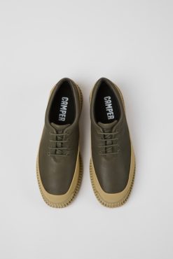 αποκλειστικά γυναικεία δερμάτινα παπούτσια Camper Pix πράσινα και μπεζ