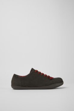 Γκρι δερμάτινα ανδρικά παπούτσια με εξωτερικές σόλες TPU (20% ανακυκλωμένα). Ένα εικονίδιο Camper που εξελίσσεται με κάθε εποχή, το Peu προσφέρει λειτουργική απλότητα εμπνευσμένη από το περπάτημα ξυπόλητος. Είναι ραμμένο 360 μοιρών και κατασκευασμένο με τεχνική κατασκευής Strobel, που εγγυάται απαράμιλλη ελαστικότητα και ανθεκτικότητα κάτω από οποιεσδήποτε συνθήκες.