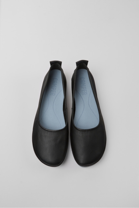 Μαύρα δερμάτινα γυναικεία παπούτσια με σόλες από καουτσούκ. Το Right που κυκλοφόρησε για πρώτη φορά το 2005, συνδυάζει την ευελιξία των παντόφλων μπαλαρίνας με την ανθεκτική προστασία από σόλες από καουτσούκ για το δρόμο.