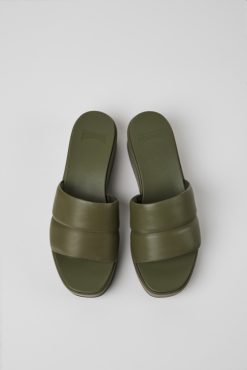 Πράσινα δερμάτινα γυναικεία σανδάλια με μη αφαιρούμενα πατώματα PU και εξωτερικές σόλες από PU. Τα γυναικεία Flatform σανδάλια Misia είναι πλατφόρμες που προσφέρουν σταθερό ύψος και εκλεπτυσμένη σιλουέτα τυλιγμένα με απαλό και κομψό μονόχρωμο δέρμα.