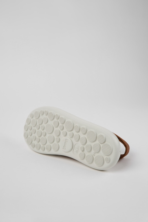 Καφέ και λευκά δερμάτινα γυναικεία σανδάλια με ανατομικά μη αφαιρούμενα πατώματα EVA και εξωτερικές σόλες XL EXTRALIGHT® Organix™ 3.0. Συνδυάζοντας όγκο με σχεδιαστική απλότητα, το Pelotas Flota διαθέτει εξωτερική σόλα με φυσική βάση που προσφέρει άνεση και απορρόφηση κραδασμών.