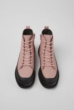 Ροζ και μαύρες δερμάτινες γυναικείες μπότες με κορδόνια με πατώματα OrthoLite® Recycled™ και εξωτερικές σόλες EVA. Τα παπούτσια Pix μας είναι βασισμένα σε τυπολογίες κλασικής έμπνευσης και έχουν βελτιωθεί με χαρακτηριστική, αθλητική εξωτερική σόλα και απαράμιλλη ευελιξία.