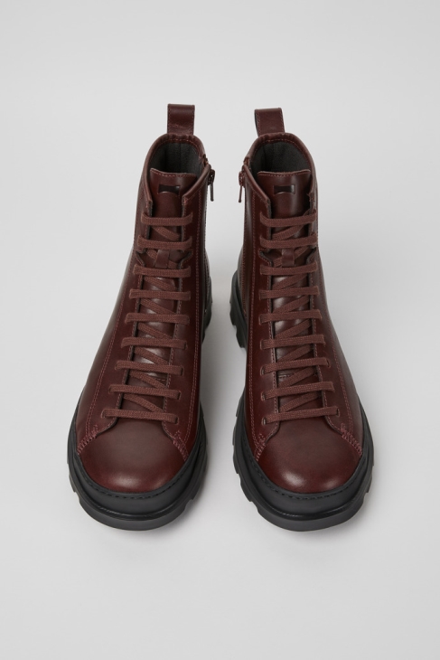 αποκλειστικές δερμάτινες μπότες Camper Brutus μπορντό με κορδόνια