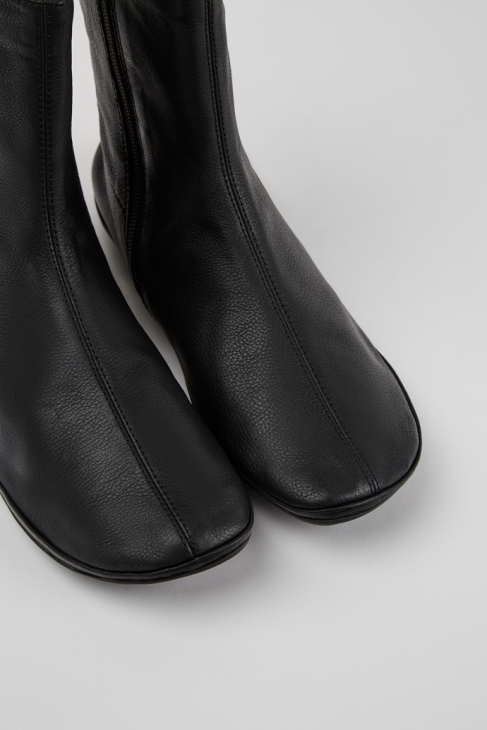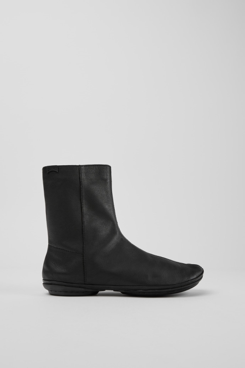 Μαύρα δερμάτινα γυναικεία μποτάκια με εξωτερική σόλα από καουτσούκ (20% ανακυκλωμένα). Το Right που κυκλοφόρησε για πρώτη φορά το 2005, συνδυάζει την ευελιξία των παντόφλων μπαλαρίνας με την ανθεκτική προστασία από σόλες από καουτσούκ για το δρόμο.