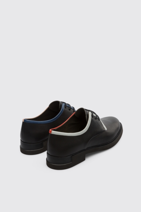 Γυναικείο έξυπνο μαύρο παπούτσι TWINS με κορδόνια με χρωματικές λεπτομέρειες και δερμάτινο επάνω μέρος. Γεννημένος το 1988, η κλασική μας ιδέα TWINS – αντίθετη αλλά συμπληρωματική – αμφισβητεί την ιδέα ότι τα παπούτσια πρέπει να είναι πανομοιότυπα και ζουν με αυτά τα αταίριαστα γυναικεία παπούτσια για να σχηματίσουν ένα πραγματικά μοναδικό ζευγάρι.