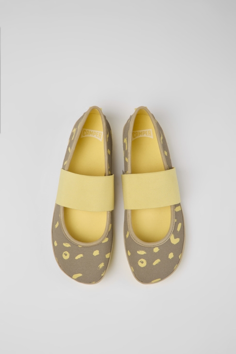 Πολύχρωμες γυναικείες μπαλαρίνες Nubuck με ελαστικό λουράκι, αφαιρούμενα πατώματα EVA και εξωτερικές σόλες από καουτσούκ (20% ανακυκλωμένες). Το Right κυκλοφόρησε για πρώτη φορά το 2005, συνδυάζει την ευελιξία των παντόφλων μπαλαρίνας με την ανθεκτική προστασία από σόλες από καουτσούκ για το δρόμο.
