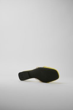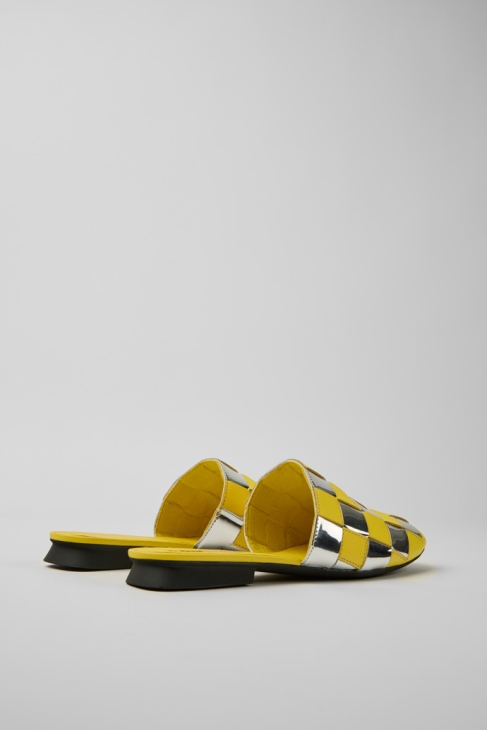 Κίτρινα και ασημί ανακυκλωμένα γυναικεία Mules PET και δέρμα με 100% εξωτερικές σόλες TPU (20% ανακυκλωμένα). Η γυναικεία μας σειρά Casi Myra διαθέτει διαχρονικό σχέδιο με ελαφρώς τετραγωνισμένο σχήμα.