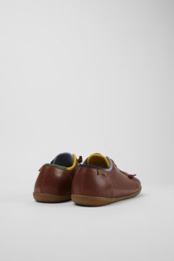 Καφέ δερμάτινα και μάλλινα ανδρικά παπούτσια με πολύχρωμες λεπτομέρειες και 100% εξωτερικές σόλες TPU (20% ανακυκλωμένες). Γεννημένη το 1988, η ιδέα μας TWINS αμφισβητεί την ιδέα ότι τα παπούτσια πρέπει να είναι πανομοιότυπα, παρουσιάζοντας αταίριαστα στυλ που είναι πραγματικά μοναδικά.