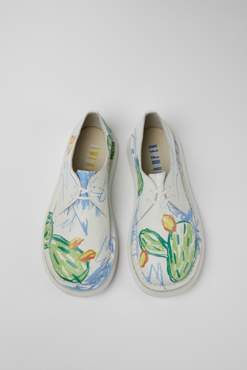 Γυναικεία παπούτσια με δερμάτινα κορδόνια σε λευκό εμπριμέ με 100% εξωτερικές σόλες από καουτσούκ (51% φυσική). Γεννημένη το 1988, η κλασική μας ιδέα TWINS – αντίθετη αλλά συμπληρωματική – αμφισβητεί την ιδέα ότι τα παπούτσια πρέπει να είναι πανομοιότυπα και ζουν με αυτά τα αταίριαστα γυναικεία παπούτσια για να σχηματιστούν ένα πραγματικά μοναδικό ζευγάρι.