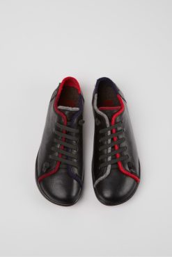 Μαύρα δερμάτινα και μάλλινα γυναικεία παπούτσια με πολύχρωμες λεπτομέρειες και εξωτερικές σόλες TPU (20% ανακυκλωμένες). Γεννημένη το 1988, η ιδέα μας TWINS αμφισβητεί την ιδέα ότι τα παπούτσια πρέπει να είναι πανομοιότυπα, παρουσιάζοντας αταίριαστα στυλ που είναι πραγματικά μοναδικά.