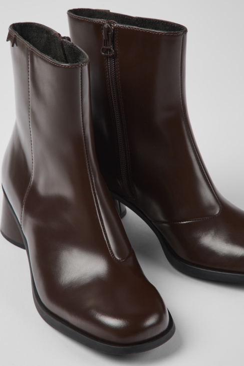 Καφέ δερμάτινα γυναικεία μποτάκια με πατώματα OrthoLite® Recycled™ και εξωτερικές σόλες από καουτσούκ με επένδυση δέρματος. Τολμηρές σιλουέτες και χρώματα χαρακτηρίζουν την Kiara μας.