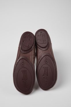 Γυναικείες μπότες από μπορντό δέρμα με εξωτερική σόλα από καουτσούκ (20% ανακυκλωμένα). Το Right που κυκλοφόρησε για πρώτη φορά το 2005, συνδυάζει την ευελιξία των παντόφλων μπαλαρίνας με την ανθεκτική προστασία από σόλες από καουτσούκ για το δρόμο.