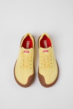 Κίτρινα υφασμάτινα γυναικεία πάνινα παπούτσια με αφαιρούμενα πατώματα OrthoLite® Recycled™ και εξωτερικές σόλες από καουτσούκ (40% φυσικό, 23% ανακυκλωμένο). Ένα εργονομικό αθλητικό παπούτσια σχεδιασμένο με ξυπόλυτη προσέγγιση, το Path είναι κατασκευασμένο από ανακυκλωμένα και φυσικά υλικά με ένα από τα χαμηλότερα ίχνη άνθρακα στην συλλογή.