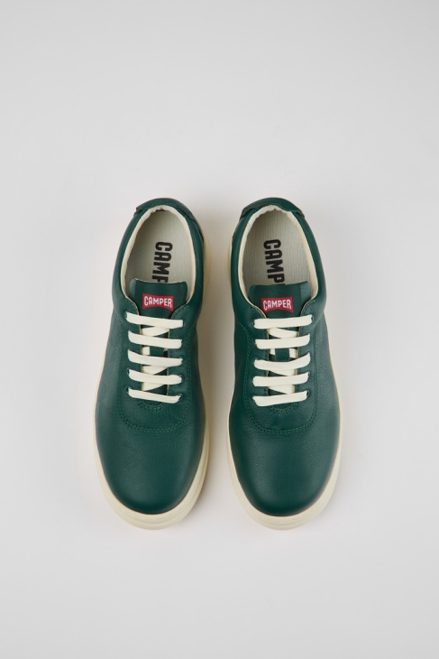 Πράσινα δερμάτινα γυναικεία πάνινα παπούτσια με αφαιρούμενα πατώματα OrthoLite® Recycled™ και εξωτερικές σόλες XL EXTRALIGHT®. Το Runner Up είναι η γυναικεία έκδοση του Runner, ενός εμβληματικού στυλ Camper που κυκλοφόρησε το 1982 και σηματοδότησε το πρώτο μας βήμα στον αθλητικό κόσμο. Αυτά τα γυναικεία αθλητικά παπούτσια προσφέρουν μια χαλαρή εμφάνιση και ένα διακριτικό τακούνι πλατφόρμας σε μια σπορ σιλουέτα εμπνευσμένη από τη δεκαετία του ’80.