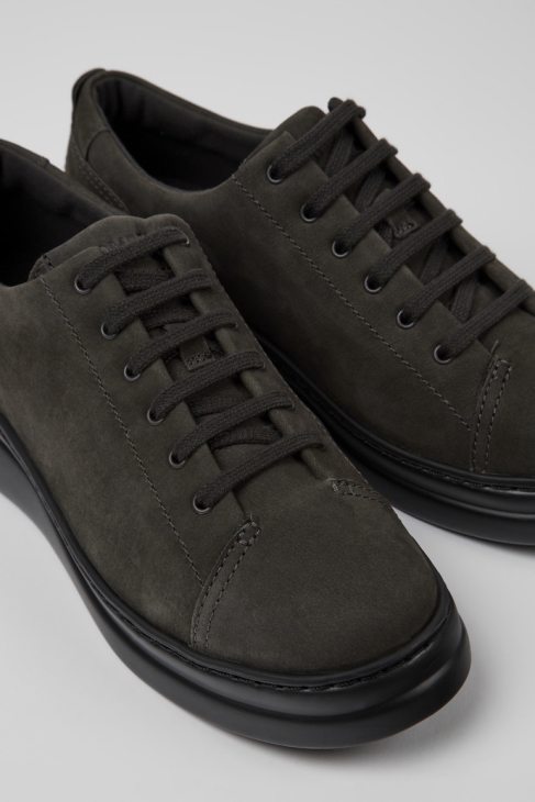Γκρι γυναικεία αθλητικά παπούτσια Nubuck με πατώματα OrthoLite® Recycled™ και εξωτερικές σόλες XL EXTRALIGHT®. Το Runner Up είναι η γυναικεία έκδοση του Runner μας, ενός εμβληματικού στυλ Camper που κυκλοφόρησε το 1982 και σηματοδότησε το πρώτο μας βήμα στον κόσμο των σπορ. Αυτά τα γυναικεία αθλητικά παπούτσια προσφέρουν μια χαλαρή εμφάνιση και ένα διακριτικό τακούνι πλατφόρμας με μια σπορ σιλουέτα εμπνευσμένη από τη δεκαετία του ’80.