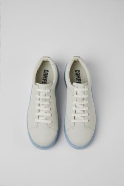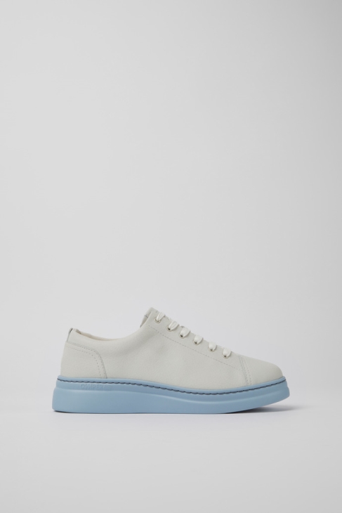 Λευκά και μπλε, μη βαμμένα δερμάτινα γυναικεία αθλητικά παπούτσια με αφαιρούμενα πατώματα OrthoLite® Recycled™ και εξωτερικές σόλες XL EXTRALIGHT®. Το Runner Up είναι η γυναικεία έκδοση του Runner, ενός εμβληματικού στυλ Camper που κυκλοφόρησε το 1982 και σηματοδότησε το πρώτο μας βήμα στον αθλητικό κόσμο. Αυτά τα γυναικεία αθλητικά παπούτσια προσφέρουν μια χαλαρή εμφάνιση και ένα διακριτικό τακούνι πλατφόρμας σε μια σπορ σιλουέτα εμπνευσμένη από τη δεκαετία του ’80.