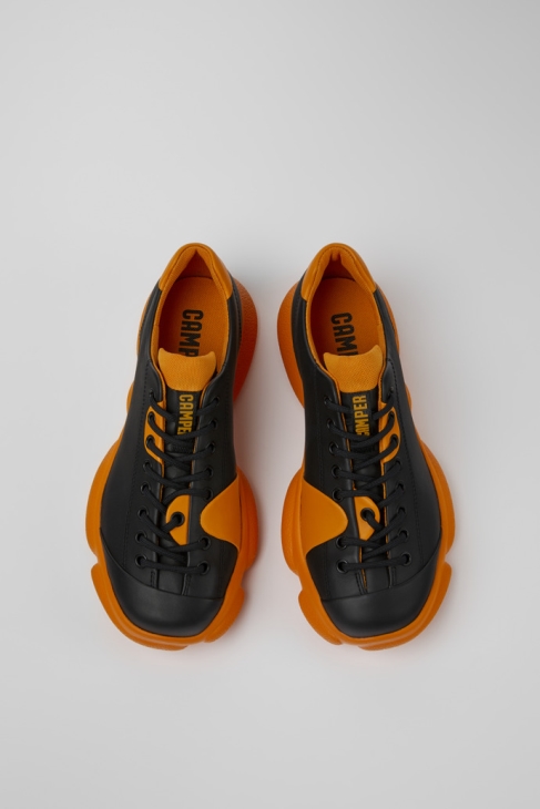 καρστ μαύρα και πορτοκαλί δερμάτινα παπούτσια αποκλειστικά για γυναίκες Camper