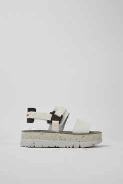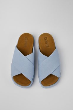 Ανοιχτό μπλε γυναικεία σανδάλια από 100% ανακυκλωμένο βαμβάκι με εξωτερικές σόλες XL EXTRALIGHT® 100% EVA. Μια νέα προσθήκη στην εμβληματική οικογένεια Brutus της Camper, αυτό το μινιμαλιστικό σανδάλι διαθέτει φυσικά υλικά και εξαιρετικά ελαφριά σόλα.
