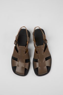 Σχέδιο Camper Dana καφέ δερμάτινα σανδάλια για γυναίκες