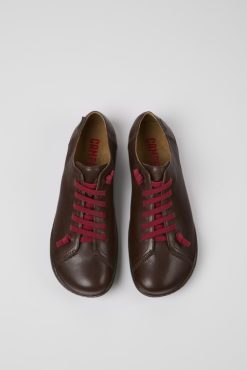 Καφέ γυναικεία παπούτσια από 100% φυτικό μαυρισμένο δέρμα με 20% ανακυκλωμένες εξωτερικές σόλες TPU. Ένα εικονίδιο Camper που εξελίσσεται με κάθε εποχή. Το Peu είναι η λειτουργική απλότητα που εμπνέεται από το περπάτημα ξυπόλητος. Είναι ραμμένο 360 μοιρών και κατασκευασμένο με τεχνική κατασκευής Strobel, που εγγυάται απαράμιλλη ελαστικότητα και ανθεκτικότητα κάτω από οποιεσδήποτε συνθήκες.