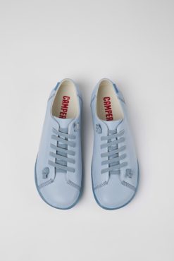 Μπλε δερμάτινα γυναικεία παπούτσια με αφαιρούμενα πατώματα PU και εξωτερικές σόλες TPU (20% ανακυκλωμένα). Ένα Camper Icon που εξελίσσεται με κάθε εποχή. Το Peu είναι η λειτουργική απλότητα που εμπνέεται από το περπάτημα ξυπόλητος. Είναι ραμμένο 360 μοιρών και κατασκευασμένο με τεχνική κατασκευής Strobel, που εγγυάται απαράμιλλη ελαστικότητα και ανθεκτικότητα κάτω από οποιεσδήποτε συνθήκες.