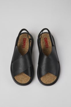 σχέδιο Pelotas Flota μαύρα δερμάτινα σανδάλια για γυναικεία τροχόσπιτα