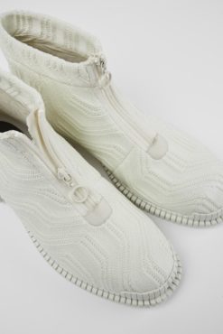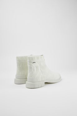 Γυναικείες μπότες λευκές με φερμουάρ. Επάνω μέρος από ύφασμα TENCEL™ Lyocell 70% και χοντρή εξωτερική σόλα EVA. Ανακυκλωμένο πέλμα OrthoLite®. Τα παπούτσια μας Pix έχουν σχεδιαστεί με βάση τυπολογίες κλασικής έμπνευσης και έχουν βελτιωθεί με χαρακτηριστική, αθλητική εξωτερική σόλα και απαράμιλλη ευελιξία.