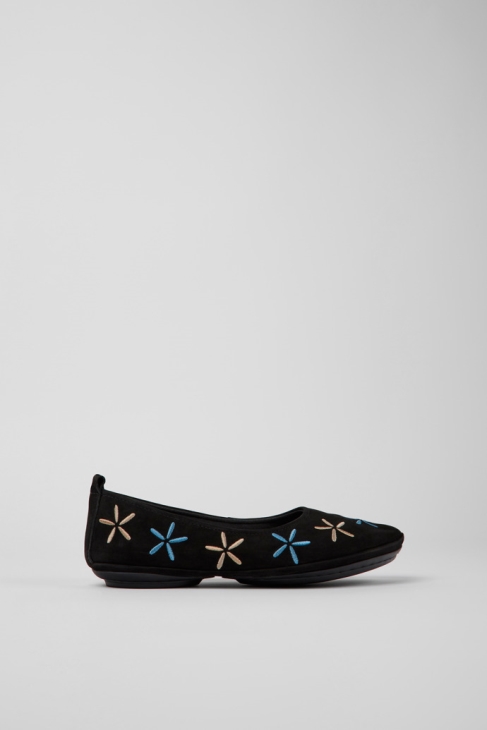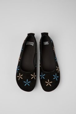 Μαύρα γυναικεία μπαλαρίνα Nubuck με κεντημένο μοτίβο αστεριών, αφαιρούμενα πατώματα EVA και εξωτερικές σόλες από καουτσούκ (20% ανακυκλωμένες). Γεννημένη το 1988, η κλασική μας ιδέα TWINS – αντίθετη αλλά συμπληρωματική – αμφισβητεί την ιδέα ότι τα παπούτσια πρέπει να είναι πανομοιότυπα και να ζουν σε αυτές τις αταίριαστες γυναίκες S παπούτσια για να σχηματίσετε ένα πραγματικά μοναδικό ζευγάρι.