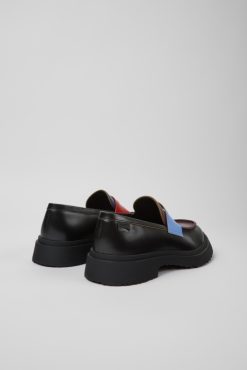 σχεδίαση τροχόσπιτο δίδυμα μαύρα δερμάτινα Loafers για άνδρες