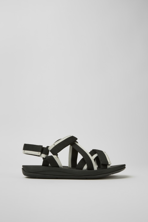 Ασπρόμαυρα ανδρικά σανδάλια με 100% ανακυκλωμένα λουριά PET, εξωτερικές σόλες EVA και σύστημα κλεισίματος με κρίκο και θηλιά. Το Match σανδάλι μας είναι απόδειξη άνεσης και λειτουργικού σχεδιασμού με ελαφριά εξωτερική σόλα και ιμάντες που στεγνώνουν γρήγορα από 100% ανακυκλωμένο PET.