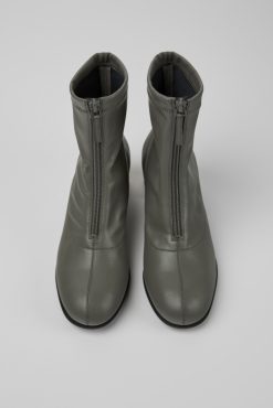 Γκρι γκρι μποτάκια από ανακυκλωμένο συνθετικό ύφασμα με εξωτερική σόλα TPU (20% ανακυκλωμένα). Η Katie είναι μια κλασική σειρά με σύγχρονη σιλουέτα και ευέλικτο, ελαφρύ και ανθεκτικό χαμηλό τακούνι.