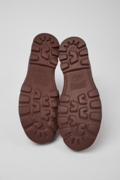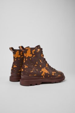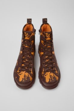 Ανδρικά μποτάκια από μπορντό και πορτοκαλί δέρμα με στάμπα βαφής, πατώματα PU και εξωτερικές σόλες XL EXTRALIGHT. Ένα πρωτότυπο Camper από το 1986 με εμβληματικό αστικό σχέδιο. Το Brutus είναι ανθεκτικό χάρη στη ραφή 360′ και διαθέτει ελαφριά τεχνολογία.