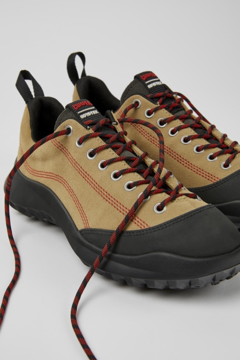 Μπεζ Nubuck και υφασμάτινα γυναικεία αθλητικά παπούτσια με τεχνολογία GORE-TEX, πατώματα OrthoLite® Recycled™ και εξωτερικές σόλες XL EXTRALIGHT®. Εμπνευσμένο από τα ελαστικά ποδηλάτου, το CRCLR είναι το παντός εδάφους πάνινα παπούτσια μας που συνδυάζει την τεχνική μας εμπειρία με μια αστική αισθητική.