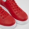 Μπεζ σουέτ και δερμάτινα αθλητικά παπούτσια για γυναίκες με κόκκινες δερμάτινες λεπτομέρειες και 20% ανακυκλωμένη εξωτερική σόλα EVA. Recycled OrthoLite® Footbed.Better Product: Το δέρμα είναι πιστοποιημένο από την Leather Working Group, έναν συνασπισμό επωνυμιών, προμηθευτών, λιανοπωλητών, κορυφαίων τεχνικών εμπειρογνωμόνων και ΜΚΟ με στόχο την αύξηση των περιβαλλοντικών προτύπων και τη διασφάλιση προτύπων βέλτιστων πρακτικών για βυρσοδέψες, κατασκευαστές και εμπόρους λιανικής. Το 20% της εξωτερικής σόλας είναι κατασκευασμένο από ανακυκλωμένο EVA, το οποίο βοηθά στην απόρριψη των απορριμμάτων και στη μείωση των εκπομπών αποτυπώματος άνθρακα με πιο συνειδητό περιβαλλοντικό αντίκτυπο, διατηρώντας τις ίδιες επιδόσεις και πρότυπα παρθένου EVA. Το Runner K21 είναι η πιο πρόσφατη προσθήκη στην οικογένεια Runner με μια ρετρό-εμπνευσμένη προσέγγιση και μια πινελιά χειροτεχνίας με νέα αυξημένη ένταση.