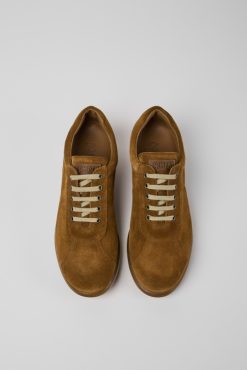 Καφέ ανδρικά αθλητικά παπούτσια Nubuck με σόλες από καουτσούκ. Το Pelotas Ariel είναι το πιο εμβληματικό στυλ Camper μας. Με μια αναμφισβήτητη εξωτερική σόλα εμπνευσμένη από τον αθλητισμό που αποτελείται από 87 σφαίρες, κάθε ζευγάρι είναι χειροποίητο από ευρωπαϊκά δέρματα που είναι ραμμένα 360o στην αρχική εξωτερική σόλα από καουτσούκ.