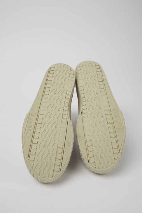 Πολύχρωμα ανδρικά πάνινα παπούτσια από 100% οργανικό βαμβάκι με υφασμάτινο επάνω μέρος από Tie-dye κατασκευασμένα σε συνεργασία με την Ethical Fashion Initiative. 23% ανακυκλωμένο καουτσούκ και 40% εξωτερικές σόλες από φυσικό καουτσούκ. Το Camaleon, το πρώτο παπούτσι της Camper, αποτελεί την επιτομή της απλότητας και της επινοητικότητας της μεσογειακής κληρονομιάς του. Εμπνευσμένο από τα ρουστίκ παπούτσια που φορέθηκαν πριν από έναν αιώνα, το Camaleon προτείνει έναν πιο προσεκτικό τρόπο περπατήματος και εξερεύνησης.