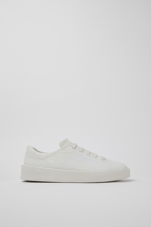 Λευκά ανδρικά αθλητικά παπούτσια από 70% ύφασμα TENCEL™ Lyocell και 51% ανακυκλωμένες εξωτερικές σόλες EVA. Το Courb είναι το Unisex καινοτόμο Sneaker μας με τεχνολογία XL EXTRALIGHT® εμπνευσμένο από τον κόσμο του βιομηχανικού σχεδιασμού.