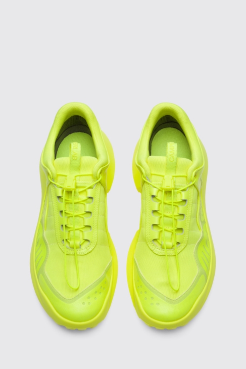 Ανδρικό κίτρινο χοντρό Sneaker νέον. Ολόσωμο δέρμα και ύφασμα. Εμπνευσμένα από ελαστικά ποδηλάτου, αυτά τα αθλητικά παπούτσια είναι το πιο προηγμένο και φουτουριστικό μας στυλ μέχρι τώρα. Χρησιμοποιώντας έναν μοναδικό συνδυασμό υλικών, το πολυστρωματικό στυλ διαθέτει μια εμβληματική σόλα με επιπλέον αντικραδασμική προστασία και πάτους OrthoLite®. Με την τεχνολογία Gore-Tex Surround®, αυτά τα αθλητικά παπούτσια αναπνέουν επιπλέον.
