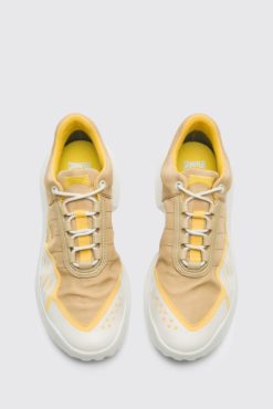 Πολύχρωμο Sneaker με τεχνολογία GORE-TEX Surround® για γυναίκες. Μπεζ και λευκό επάνω μέρος με κίτρινες λεπτομέρειες. Με κορδόνια και λευκή εξωτερική σόλα 100% EVA. Εμπνευσμένα από ελαστικά ποδηλάτου, αυτά τα Sneakers είναι το πιο προηγμένο και φουτουριστικό μας στυλ. Χρησιμοποιώντας έναν μοναδικό συνδυασμό υλικών, το πολυστρωματικό στυλ διαθέτει μια εμβληματική σόλα XL EXTRALIGHT® με επιπλέον αντικραδασμική προστασία και πάτους OrthoLite®. Με την τεχνολογία Gore-Tex Surround®, αυτά τα αθλητικά παπούτσια αναπνέουν επιπλέον.