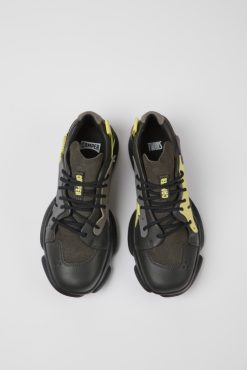 Design δίδυμα γκρι κίτρινα και μαύρα δερμάτινα πάνινα παπούτσια για γυναίκες κατασκηνωτές